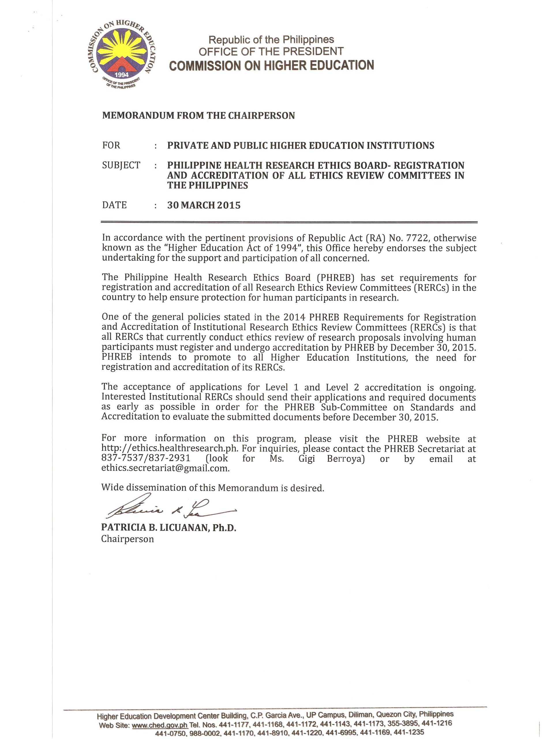 - Philippine Health Research Ethics Board (Participants Bill of Rights)